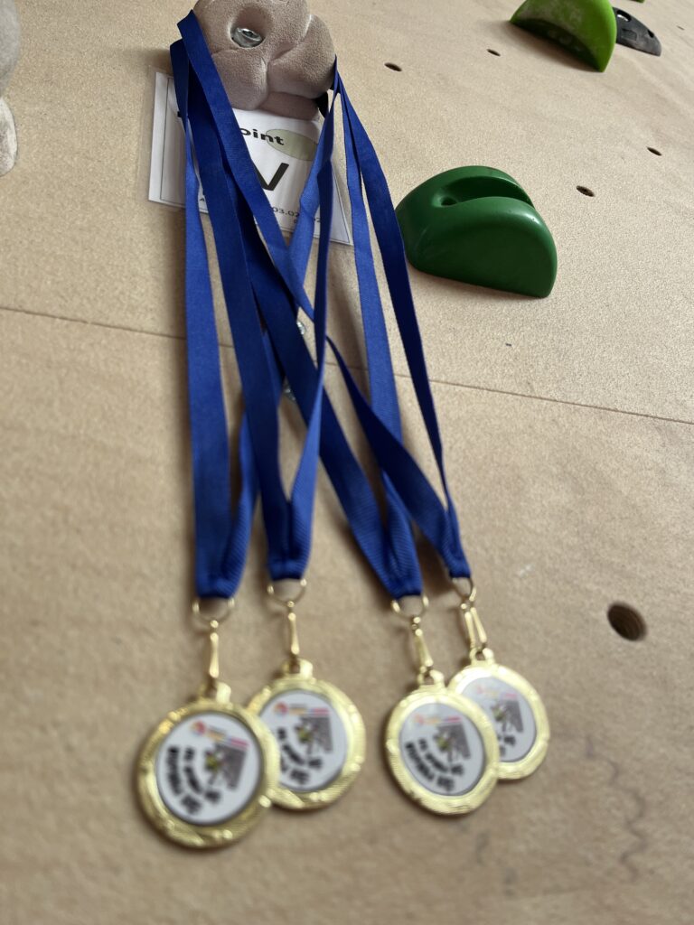 Na zdjęciach zostały przedstawione medale, które otrzymują uczestnicy projektu Nie spinaj się! Wspinaj się!